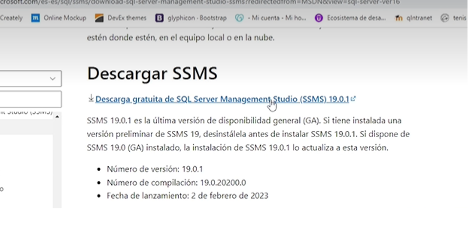 Nos pide descargar SQL server management studio en la versión 19.01: