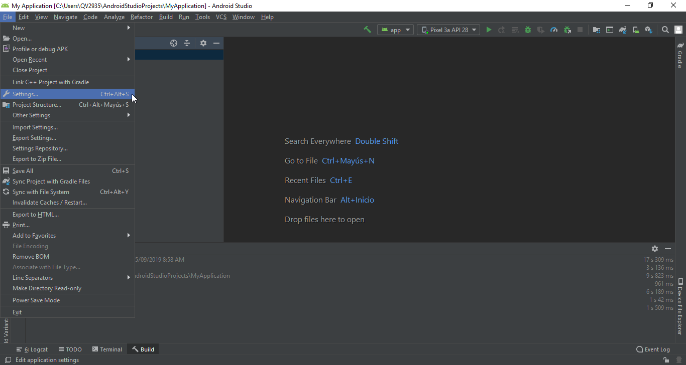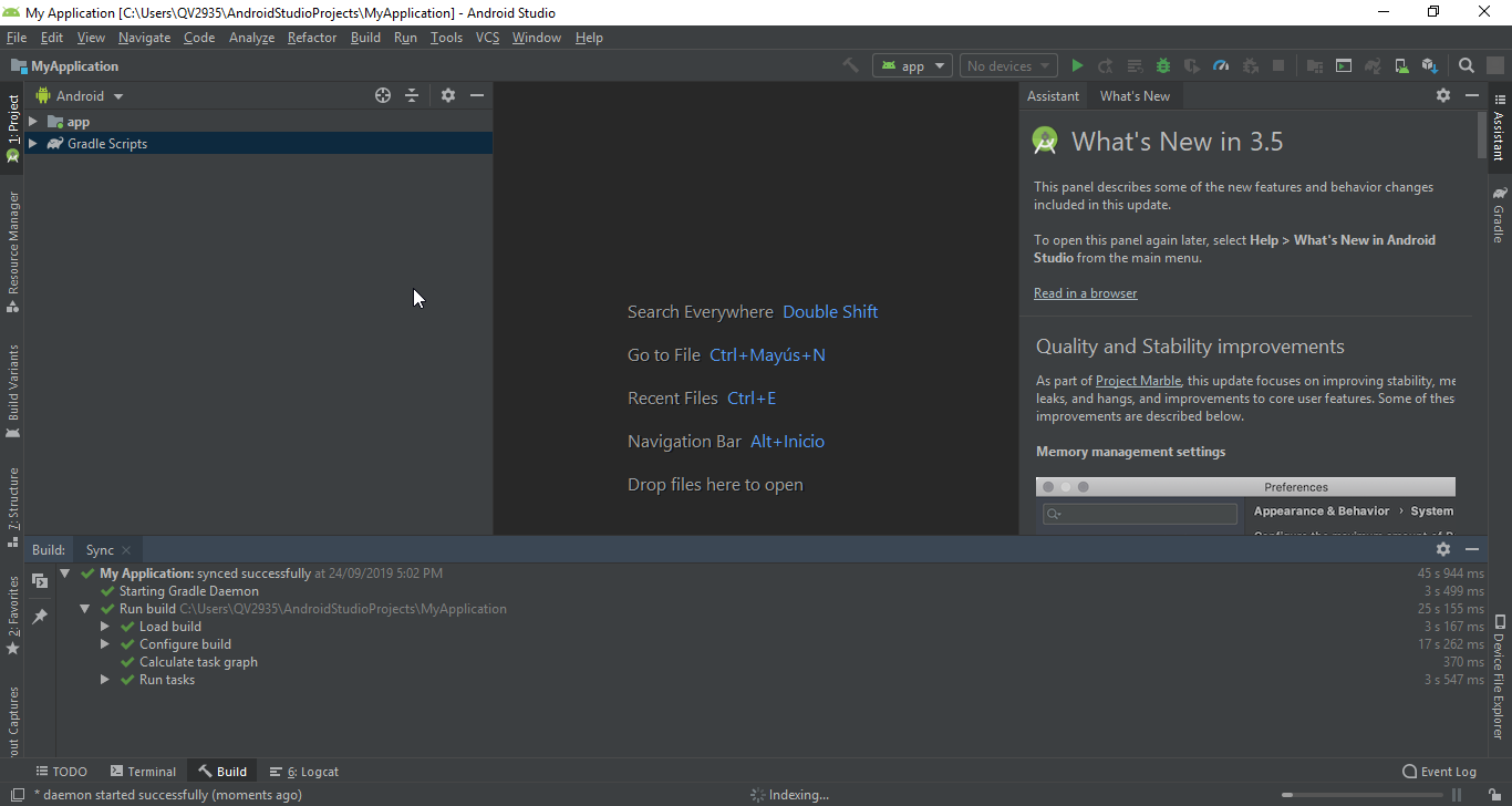 Con estos pasos realizados, se nos mostrará la interfaz de nuestro proyecto en Android Studio.