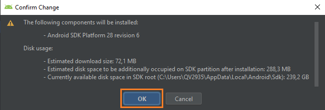 Ahora se nos muestra un cuadro de diálogo para confirmar la instalación y le damos “OK” para continuar.