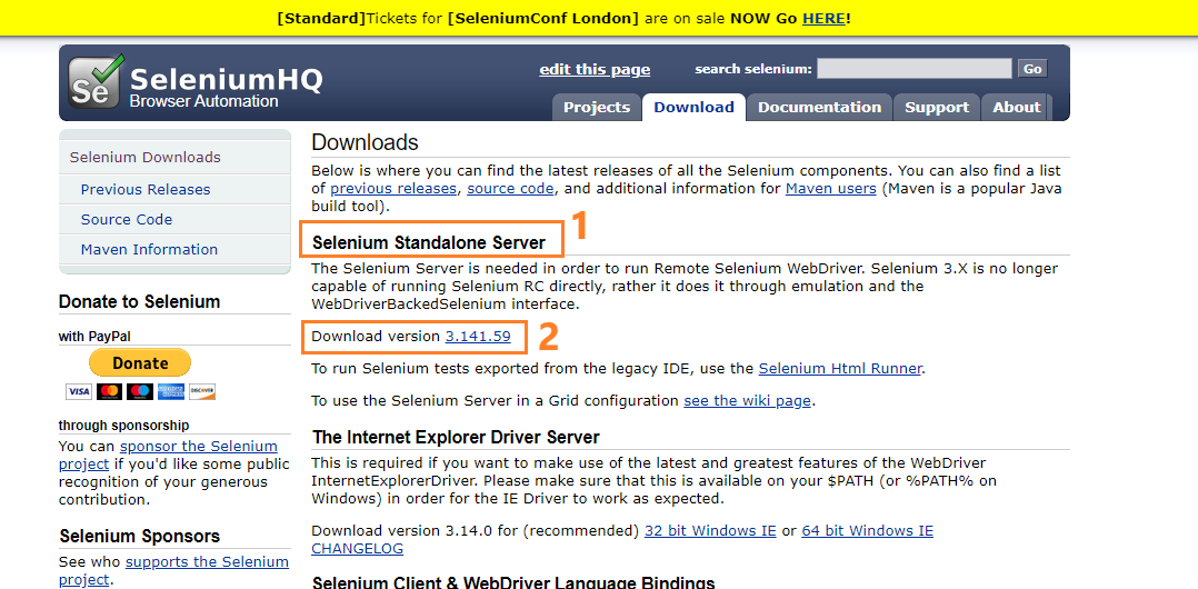 Standalone Server, luego en la página buscamos la sección “Selenium