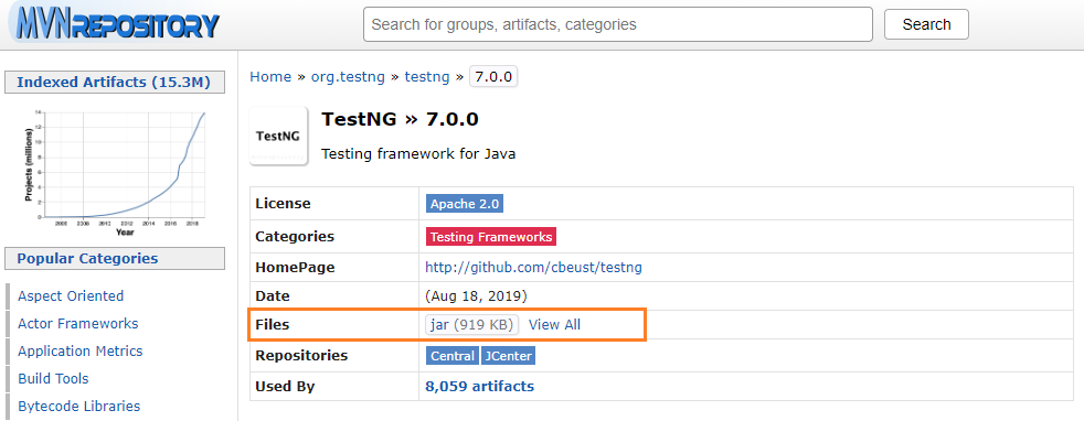la sección “Apache Commons Lang 3.9 (Java 8+)” y pulsamos clic en la opción