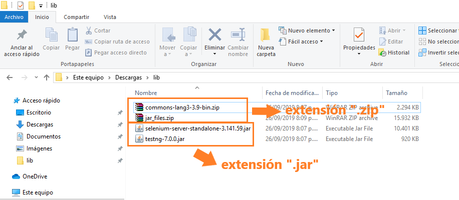 carpeta deberíamos tener dos archivos con extensión .jar y otros dos en formato
