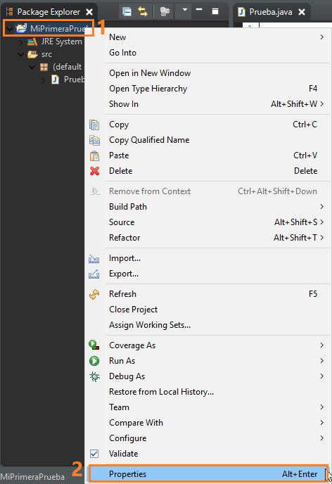 opción “Properties” a la cual le damos clic. Posteriormente se