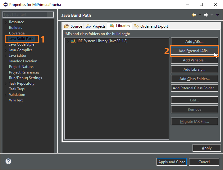 los archivos JARs están agregados y para aplicar estos cambios definitivamente