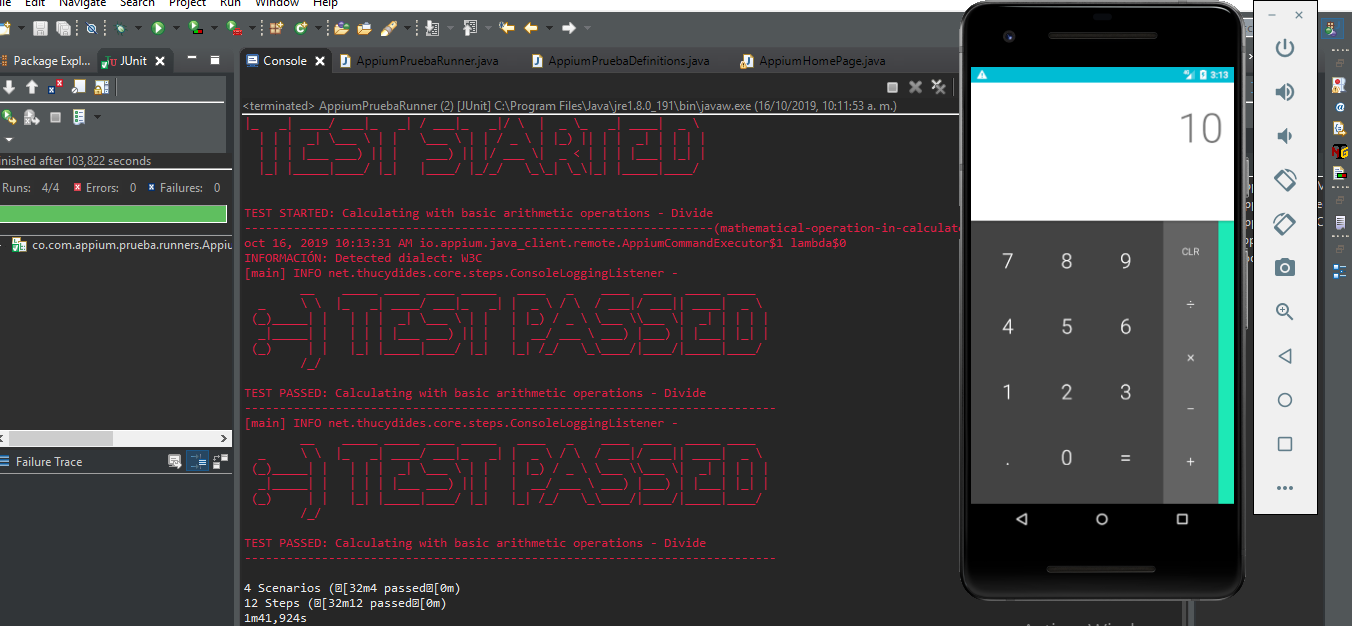 Desde la clase AppiumPruebaRunner le damos clic derecho Run As Junit Test.