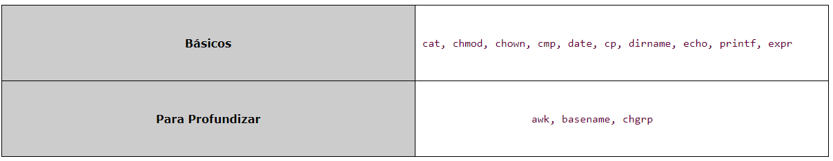 Los comandos que ofrece el shell de Linux también pueden ser clasificados así: