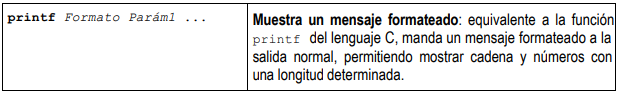 Las órdenes internas para dialogar con el usuario se describen en la siguiente tabla