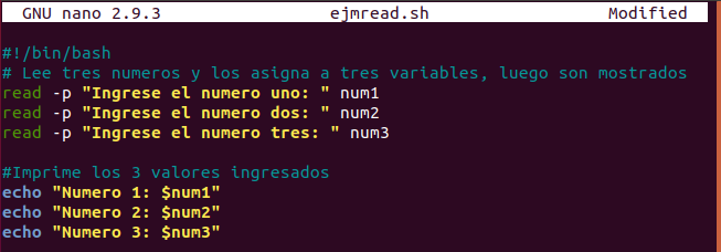 Sintaxis del comando read:read -p "Mensaje" variable1 variable2 variable3
