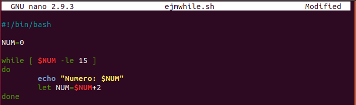 Un ejemplo simple con while en donde imprimimos una variable y luego a este valor se le suma 2 hasta que el numero sea menor o igual que 15