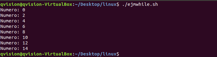 #!/bin/bash i=0 while [ $i -lt 6 ] do (( i++ )) #Incremento la variable en 1 [ $i -eq 3 -o $i -eq 6 ] && continue echo "$i" done