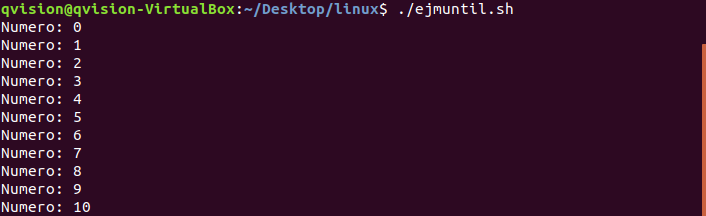 Cabe destacar que until, primero comprobará si se cumple la condición y si se cumple y sólo si se cumple entonces finaliza la secuencia de las instrucciones contenidas entre do y done.