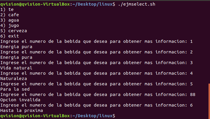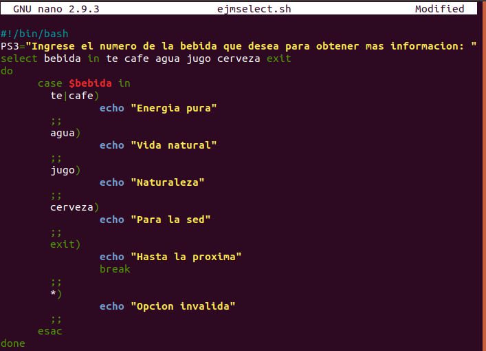 El bucle de selección proporciona una manera fácil de crear un menú numerado desde el cual los usuarios pueden seleccionar opciones. Es útil cuando necesita pedirle al usuario que elija uno o más elementos de una lista de opciones.