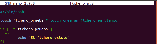 Este script comprueba si existe el fichero fichero_prueba, en este caso se crea antes del condicional para verificar que si ingrese a la estructura de control.