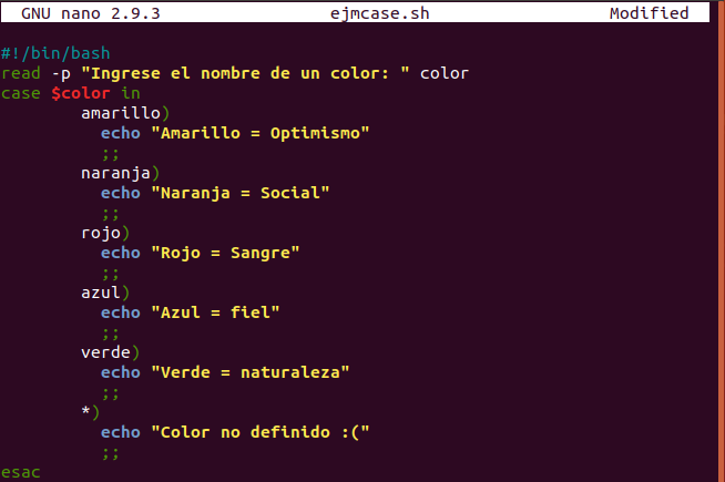 case $variable_name in patron1) command1 ... .... commandN ;; patron2) command1 ... .... commandN ;; patronN) command1 ... .... commandN ;; *) commandDefault ;; esac