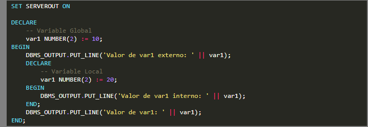 A continuación, se muestran algunas reglas que se usan como buena práctica a la hora de nombrar las variables en PL/SQL: