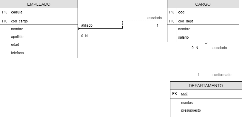Para esta práctica se va a crear una base de datos usando SQL Developer que llevará como nombre Q-Vision, la cual consta de tres tablas que son EMPLEADO, CARGO y DEPARTAMENTO. A continuación, se visualiza el diagrama Entidad-Relación para que se tenga una mejor idea de la estructura de la base de datos.