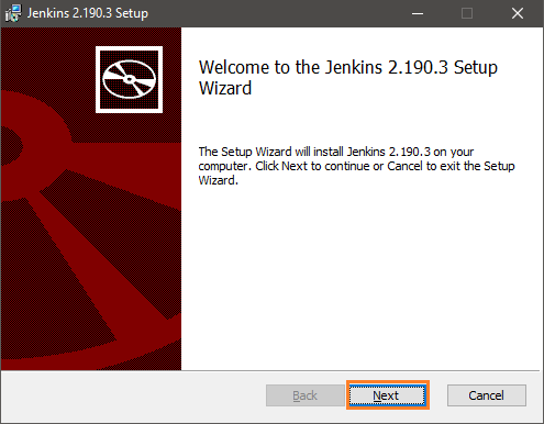 El instalador estará comprimido en un archivo .zip, procedemos a descomprimirlo y luego darle doble clic al archivo “jenkins.msi” para comenzar la instalación. Al hacer esto se nos abrirá el asistente de bienvenida y le damos clic en el botón “Next”.