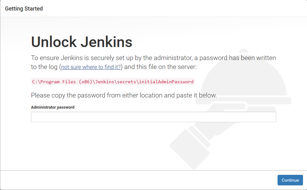 Cuando se cierre el asistente de instalación, se nos abrirá automáticamente el navegador donde veremos una pantalla de Jenkins que pide introducir una contraseña para poder configurarla.