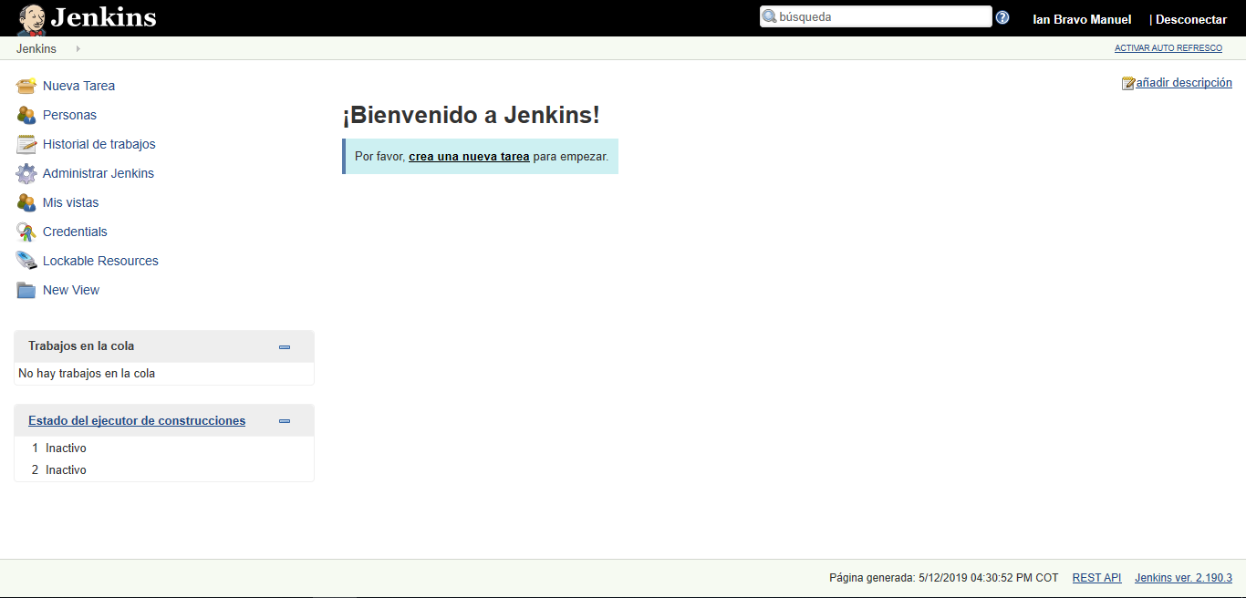 Al ingresar debemos observar nuevamente la interfaz de Jenkins.