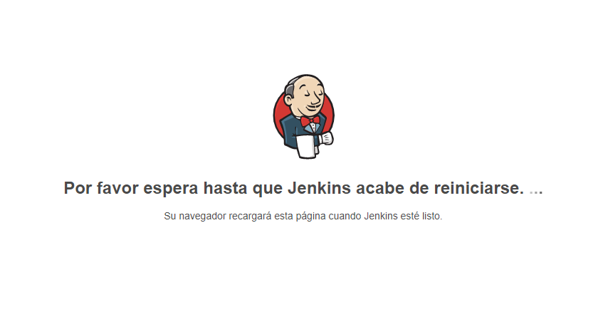 Ahora nos saldrá una nueva interfaz en la cual nos pregunta si queremos reiniciar Jenkins. Le damos que sí y aparecerá una pantalla en donde se está reiniciando.