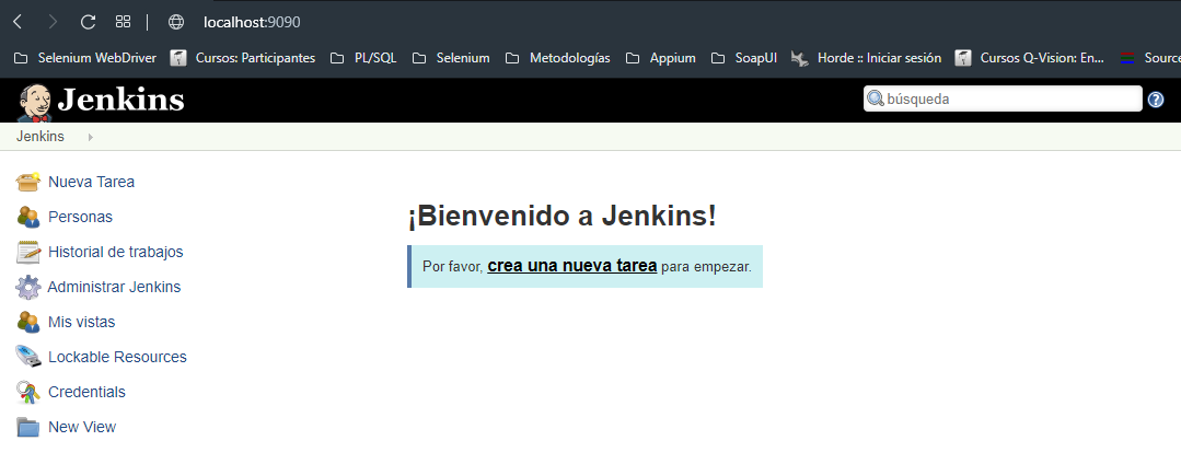 Puede que Jenkins no se reinicie de forma automática o nos redirija a una página no existente, entonces lo que debemos hacer es iniciarlo de manera manual, para esto, nos ubicamos en la barra de direcciones del navegador y ponemos la URL: http://localhost:9090, “9090” hace referencia al puerto que nosotros le asignamos anteriormente.