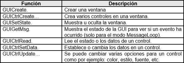 AutoIt nos proporciona la manera de nosotros poder crear interfaces gráficas de usuario las cuales consisten en venetanas y controles.